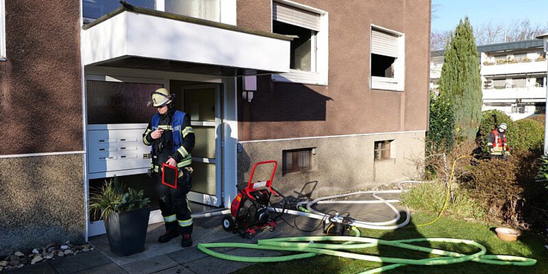 Bei Eintreffen der Feuerwehr konnte zunächst nur das Piepen des Rauchmelders wahrgenommen werden. Durch eine Erkundung auf der Gebäuderückseite wurde Rauch in der Wohnung festgestellt.