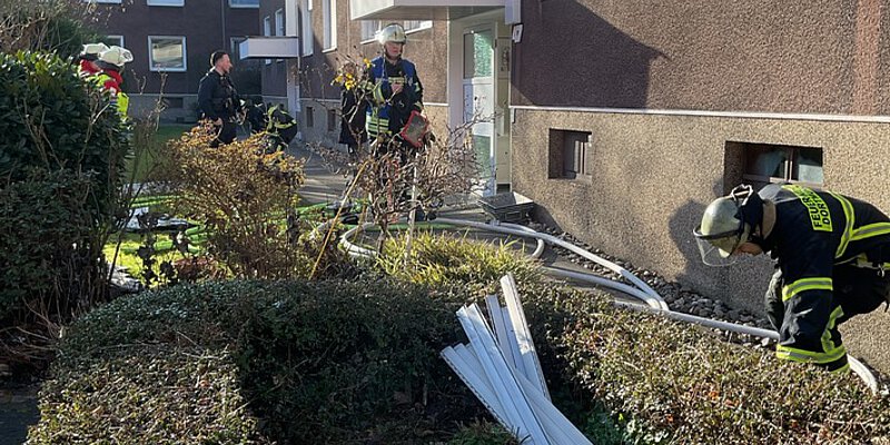 Der Brandherd konnte im Eingangsbereich der Erdgeschosswohnung ausfindig gemacht werden. Trotz der starken Rauchentwicklung konnte eine schwer verletzte Person im Wohnzimmer schnell gefunden werden. Die Einsatzkräfte trugen Sie aus der Wohnung, um Sie einer medizinischen Versorgung durch den Rettungsdienst zuzuführen.